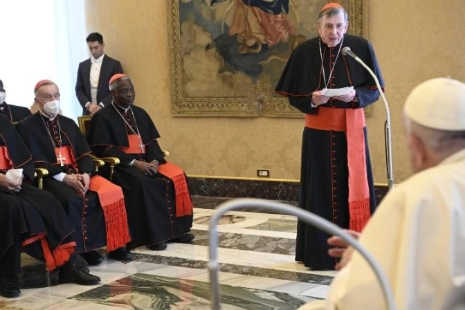 El Santo Padre también habló a los cardenales y religiosos acerca de la guerra en Ucrania y aseguró que este conflicto "tiene una dimensión mayor y amenaza al mundo entero, y no puede dejar de cuestionar la conciencia de cada cristiano y de cada Iglesia".