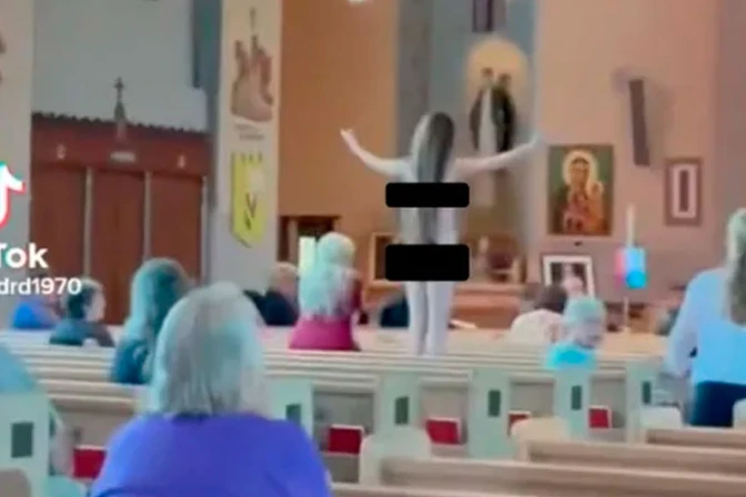 Una mujer semidesnuda irrumpió en Misa en una iglesia católica en el estado de Michigan (Estados Unidos), gritando lemas pro aborto de pie sobre una banca, como se puede apreciar en un video compartido en redes sociales.
