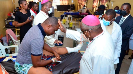 Obispo visitando a los heridos de la masacre del 5 de junio. Crédito: Ayuda a la Iglesia Necesitada