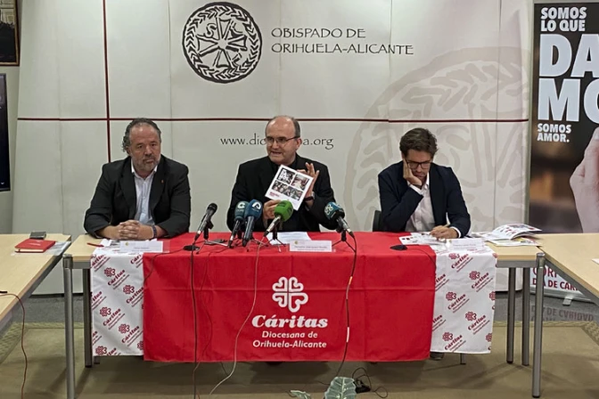En la rueda de prensa también participaron el director de Cáritas Diocesana de Orihuela-Alicante, Víctor Mellado y el secretario general de Cáritas Diocesana, Francisco Javier Ruvira.