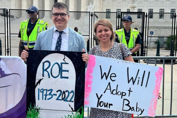 Luego de la derogación de Roe vs. Wade en Estados Unidos, un joven matrimonio católico recibió una ola de ataques de abortistas en redes sociales por sostener un cartel en los exteriores de la Corte Suprema en el que se leía la frase: "Adoptaremos a su bebé".