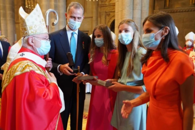 Por su parte, el Rey Felipe VI, acompañado de la Reina Leticia, la Princesa de Asturias y la Infanta Sofía, ha renovado el voto al apóstol Santiago.