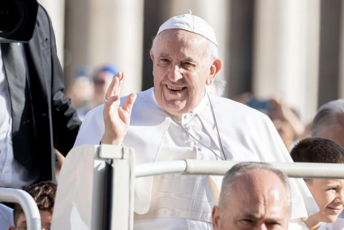 Al comienzo de la Audiencia General, el Santo Padre recorrió en el papamóvil los pasillos de la plaza vaticana junto a unos niños para saludar y bendecir a los fieles presentes.