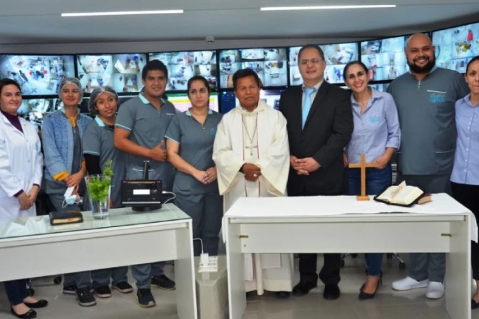 Al finalizar la presentación del centro de comando, Mons. Leigue Cesarí bendijo las instalaciones y pidió al Señor que guíe a todos y cada uno de los que conforman el gran equipo del Hospital Católico.