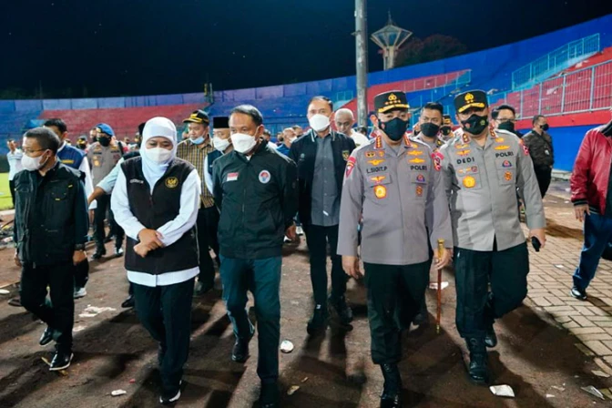 El 2 de octubre, después de un partido en el Estadio Kanjuruhan de la ciudad de Malang, miles de hinchas se enfrentaron en las gradas tras la derrota del equipo local. Luego, los simpatizantes del equipo contrario invadieron el campo de juego y la policía lanzó gases lacrimógenos, provocando una estampida que causó varios casos de asfixia.