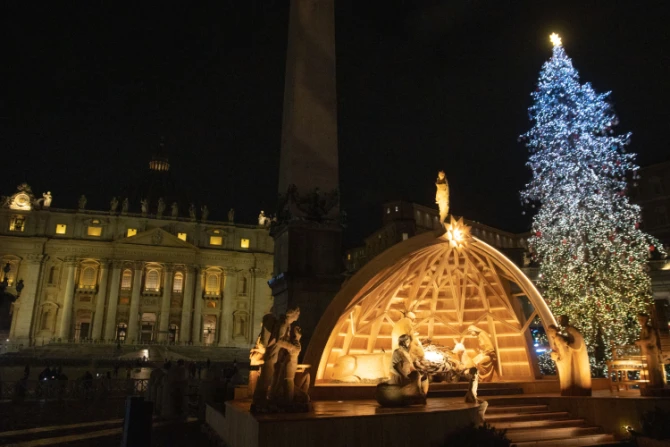 Esta noche se encendieron las luces para inaugurar el nacimiento y el árbol de Navidad del 2022 en la Plaza de San Pedro, en el Vaticano.