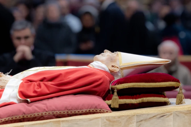 Tras su muerte, el Papa Emérito Benedicto XVI fue vestido con la casulla roja que utilizó durante la Jornada Mundial de la Juventud (JMJ) Sydney 2008, y con esa misma será enterrado en las grutas vaticanas, bajo la Basílica de San Pedro.