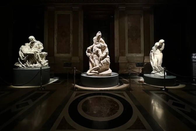 En el contexto de la Semana Santa, los Museos Vaticanos anunciaron la inauguración de la muestra, "instalada en la entrada de la Pinacoteca Vaticana que permitirá a los visitantes admirar los calcos de yeso realizados entre los siglos XIX y XX de las Piedades: la Vaticana, Bandini y Rondanini".
