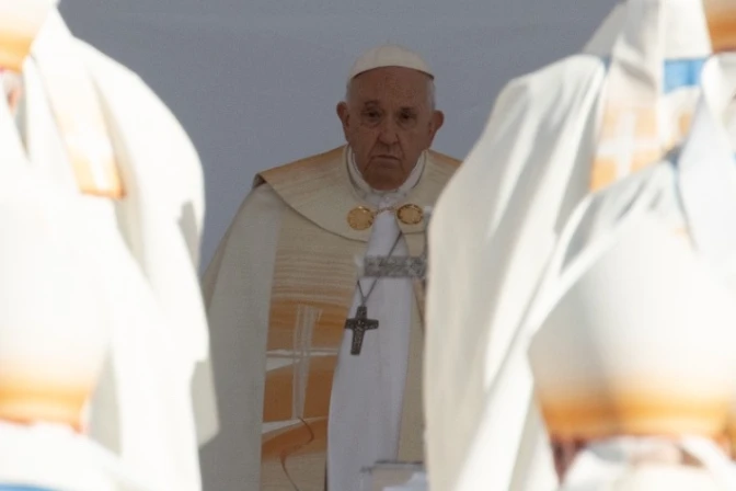 El Papa llegó esta mañana al altar en silla de ruedas para celebrar la Misa ante 50 mil personas, entre ellas más de 30 mil en la plaza Kossuth Lajos, según las autoridades locales.