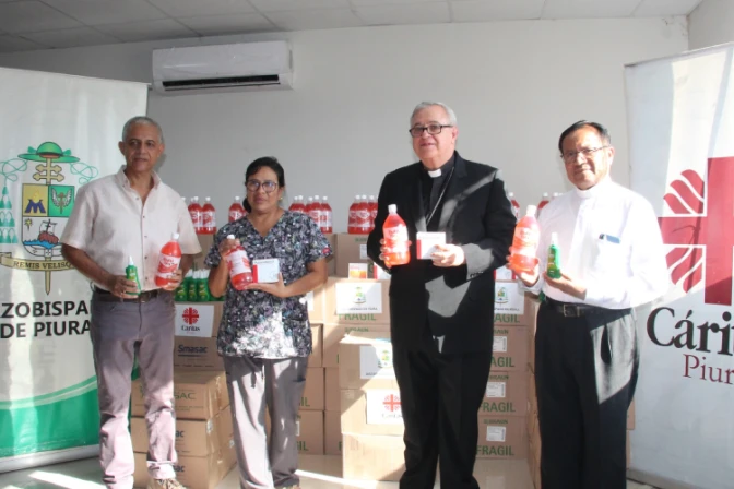 En una nota de prensa difundida por el Arzobispado se detalla que, gracias al aporte de Cáritas del Perú, se donaron 15.000 pastillas de Paracetamol, 1.140 botellas de suero rehidratante oral y 1.000 repelentes contra insectos destinados a los enfermos más pobres. La ceremonia de entrega se llevó a cabo en los ambientes del Almacén Central de la DIRESA de Piura.