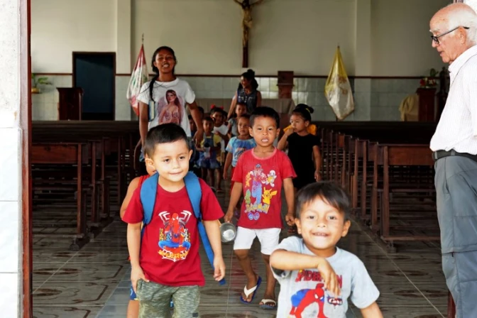 Al concluir la Misa de las 7:00 de la mañana, "vamos al río para visitar dos comunidades cada domingo", detalla el religioso. De esta manera, es capaz de ver a todas en dos o tres ocasiones cada año.