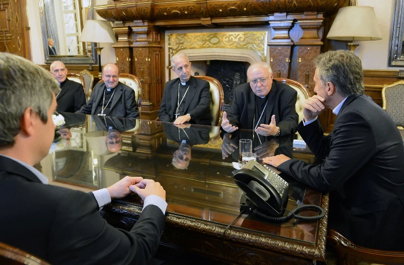 Los Obispos presentes en la reunión del 23 de diciembre en la Quinta Presidencial de Olivos, fueron el Presidente de la CEA, Mons. José María Arancedo; el primer Vicepresidente, Cardenal Mario Poli; el segundo Vicepresidente, Mons. Cargnello; y el Secretario General, Mons. Carlos H. Malfa.