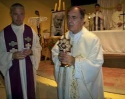 Con una multitudinaria presencia de fieles que llegaron de distintos puntos de la provincia y autoridades argentinas, la reliquia del beato fue entronizada en una Eucaristía presidida por el Obispo de San Roque, Mons. Hugo Nicolás Barbaro, junto a otros siete sacerdotes.