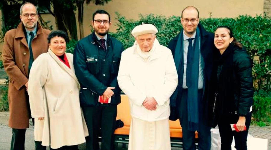 En el encuentro realizado el 15 de diciembre con Benedicto XVI participaron la editora de ACI Stampa, Angela Ambrogetti, acompañada de su esposo y los periodistas Andrea Gagliarducci, Marco Mancini y Verónica Giacometti.