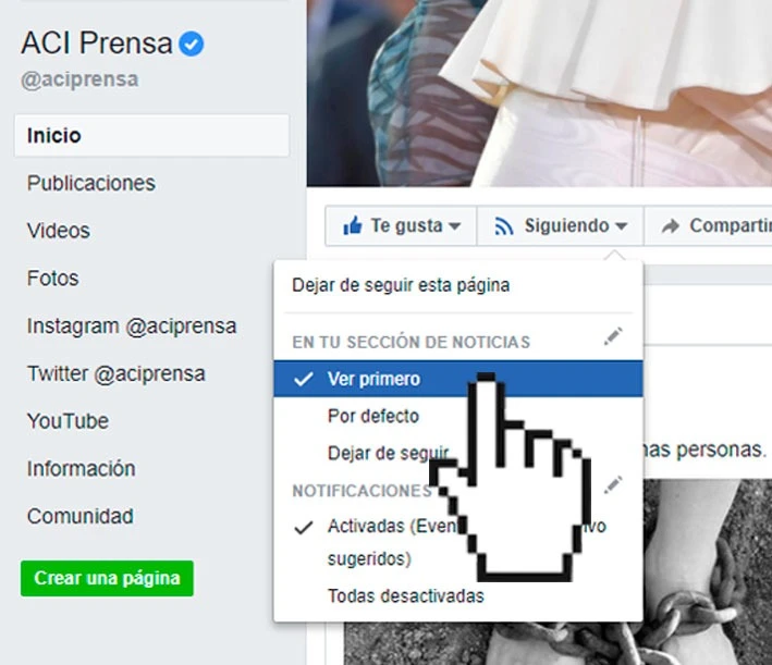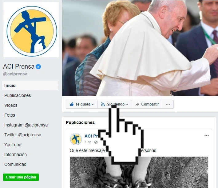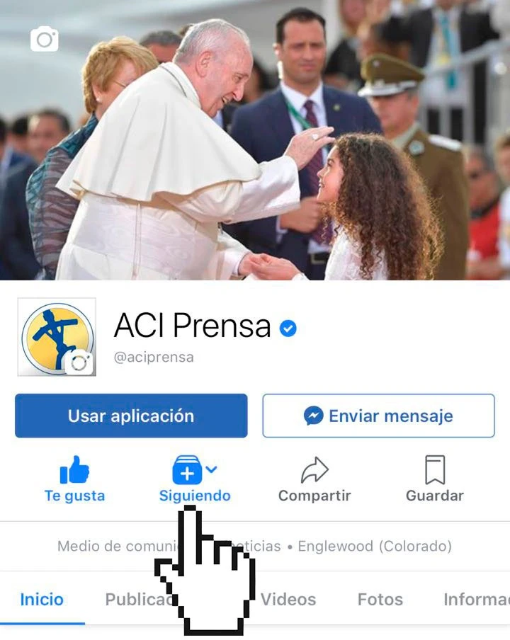 El mecanismo es bastante simple: en la página de Facebook de ACI Prensa, a la derecha de la opción "me gusta", se encuentra el menú "siguiendo".