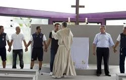 En un ambiente de recogimiento, los integrantes del elenco paulista escucharon atentamente las palabras de sacerdote y rezaron con devoción el Padre Nuestro y el Ave María.