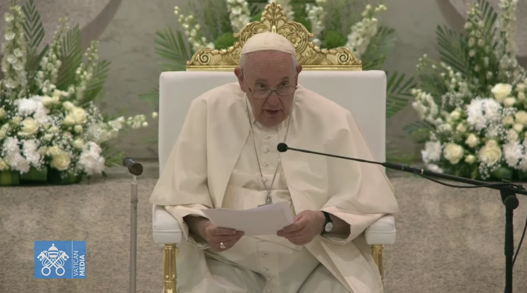 Desde hace tiempo tenía el deseo de encontrarme con ustedes; por eso hoy quisiera agradecer al Señor. Agradezco a Mons. Tombe Trille su saludo y a todos ustedes su presencia. Algunos hicieron días de camino para estar aquí. Llevo siempre grabados en el corazón algunos momentos que hemos vivido antes de esta visita, como la celebración en San Pedro en el 2017, durante la cual elevamos una súplica a Dios pidiendo el don de la paz; y el retiro espiritual del 2019 con los líderes políticos, que fueron invitados para que, por medio de la oración, acogieran en sus corazones la firme resolución de trabajar por la reconciliación y la fraternidad en el país. Nuestra necesidad primordial es acoger a Jesús, nuestra paz y nuestra esperanza.
