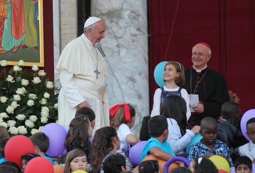 El Santo Padre saludó a los peregrinos reunidos bajo el lema "Familia, vive la alegría de la fe", y aseguró que ha escuchado "sus experiencias, las historias que han contado. He visto tantos niños y tantos abuelos. He sentido el dolor de tantas familias que viven en situación de pobreza y de guerra. Escuché a los jóvenes que quieren casarse, a pesar de miles de dificultades, y entonces nos preguntamos: ¿Cómo es posible hoy vivir la alegría de la fe en familia?".