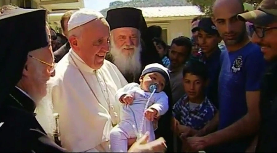 Esta histórica visita del Papa inició por la mañana cuando viajó en avión de Atenas al aeropuerto de Mitilene, en la isla de Lesbos. Luego se dirigió en coche al Centro de acogida e identificación de Mitilene, bajó del vehículo y caminó durante 20 minutos para saludar a numerosos refugiados, muchos de ellos, mujeres y niños.