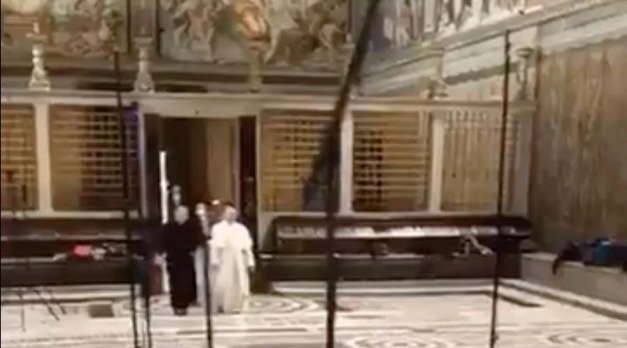 El Papa Francisco visitó de sorpresa al Coro de la Capilla Sixtina, interrumpiendo brevemente la grabación de un disco con música de Pascua.