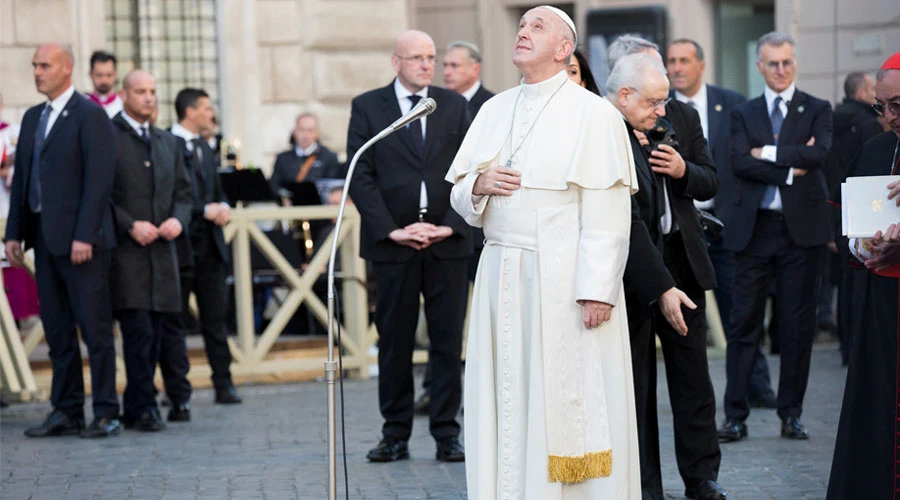 El Santo Padre llegó a la Plaza a las 4.00 p.m. (hora de Roma) proveniente de la Basílica Pontificia de Santa María Mayor, donde oró brevemente ante la imagen de la Salus Populi Romani, patrona y protectora del pueblo romano.