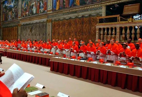 En 1961 Juan XXIII recibió en audiencia en esta Capilla Sixtina al cuerpo diplomático acreditado en la Santa Sede. Señaló la figura dominante del Cristo juez, pintado en el fresco de Miguel Ángel, y les dijo que Cristo juzgará también el obrar de cada una de las naciones en la historia. Ustedes se encuentran en esta misma Capilla, bajo la figura de ese Cristo, con la mano alzada, no para aplastar sino para iluminar el voto de ustedes, para que sea "secundum Spiritum", no "secundum carnem". […] Es de este modo que el elegido no será sólo el de ustedes, sino esencialmente el Suyo.