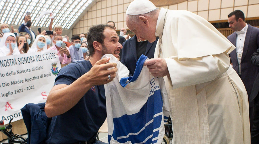 En el marco del Día Mundial de las Personas con Discapacidad, el Papa Francisco recibió en el Vaticano a un grupo de discapacitados.