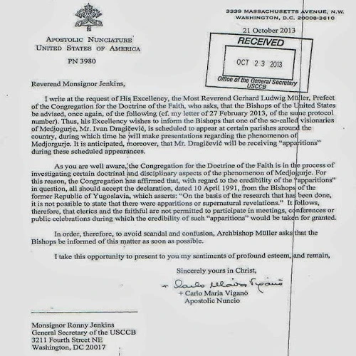 En enero de 2014, una comisión del Vaticano concluyó una investigación de casi cuatro años sobre los aspectos doctrinales y disciplinarios de las supuestas apariciones de Medjugorje, y presentó un documento a la Congregación para la Doctrina de la Fe.