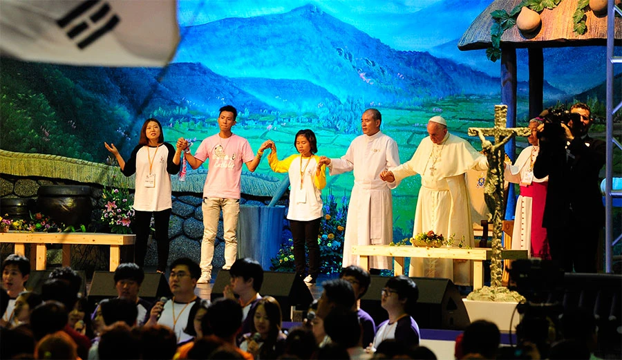 Durante el encuentro que el Papa Francisco tuvo con miles de jóvenes en el Santuario de Solmoe, hizo un llamado a rezar por la unidad de Corea del Norte y Corea del Sur, pues –afirmó-, se trata de una sola familia que está dividida, "son hermanos".