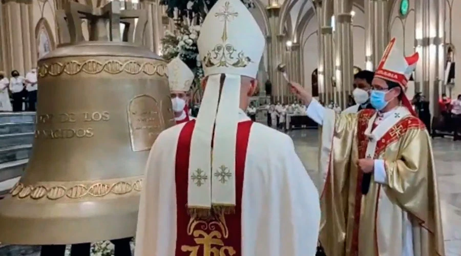 Esta campana fue bendecida por el Papa Francisco en octubre de 2021 y enviada a Ecuador "para despertar conciencias", comenta Zea.