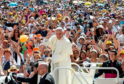 El Papa Francisco dijo luego que la Jornada Mundial de la Juventud "es siempre una fiesta", pero "después está la fiesta más grande que es la fiesta de la fe, cuando alabamos al Señor juntos, cantando, escuchando la Palabra de Dios, permaneciendo en silencio de adoración: todo esto es la culminación de la JMJ, es el verdadero propósito de esta peregrinación, y se vive de una manera particular en la gran Vigilia del sábado por la noche y en la Misa final".