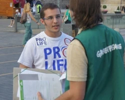 “Los voluntarios de Greenpeace no podían tolerar que un grupo de jóvenes repartiera información objetiva sobre el aborto. Por eso recurrieron al insulto y a la agresión física”, señaló.