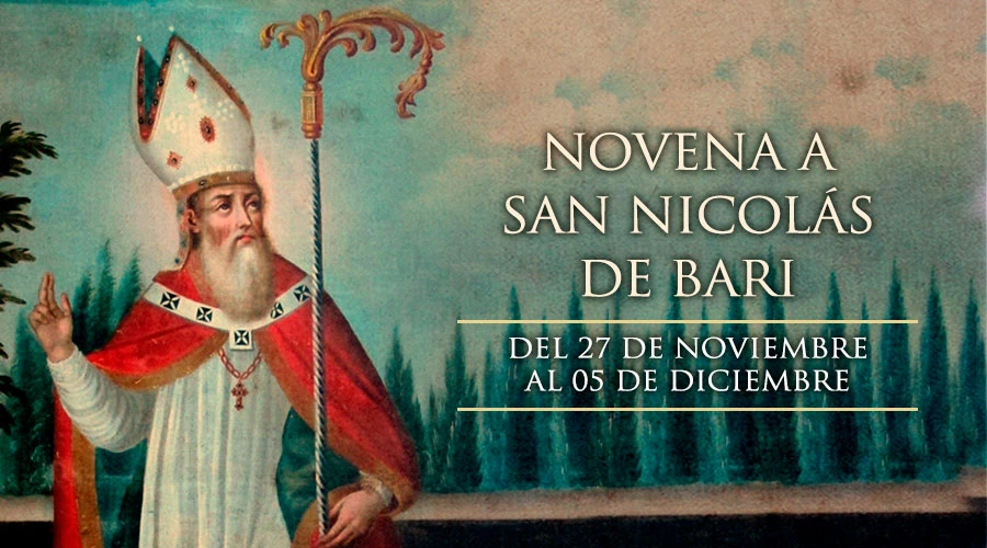 ¡Oh glorioso San Nicolás! Desde aquella morada de luz, en que gozas de la presencia divina, vuelve piadoso tus ojos hacia mí, y alcánzame del Señor aquellas gracias y auxilios convenientes a mis presentes necesidades, tanto espirituales como corporales, y en particular la gracia (mencionar aquí la intención de la novena), si es que conviene para mi eterna salvación.