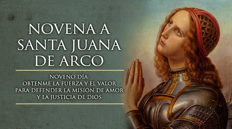 Amada Santa Juana de Arco, quien fue tan firme en la Fe y amante de la Eucaristía. Apóstol y Profeta de Dios, armada sólo con su fe y con su propio ejemplo fue y cambió el corazón de otros, inspirándolos a la fe, y protegió a todo un país y a sus generaciones futuras alejándolas de la ruina. Oro para que se me conceda una petición a Dios, que es la intención de esta novena, si es su Santa Voluntad. Oro para que a través de su patrocinio y su gracia, crezca yo en la Fe, llegando a emular su vida en todo lo que hago. Tú que tuviste una muerte mártir clamando el nombre de Nuestro Salvador Jesucristo hasta el final: es mi sincera petición que yo también clame así su nombre, no importa cuál sea la circunstancia de mi hora final.