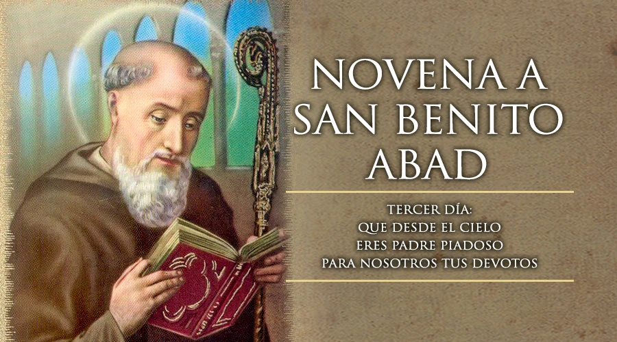 Te saludamos con filial afecto, oh glorioso Padre San Benito, obrador de maravillas, cooperador de Cristo en la obra de salvación de las almas. ¡Oh Patriarca de los monjes! Mira desde el cielo la viña que plantó tu mano. Multiplica el número de tus hijos, y santifícalos. Protege de un modo especial a cuantos nos ponemos con filial cariño bajo tu amparo y filial protección. Ruega por los enfermos, por los tentados, por los afligidos, por los pobres, y por nosotros que te somos devotos. Alcánzanos a todos una muerte tranquila y santa como la tuya. Aparta de nosotros en aquella hora suprema las asechanzas del enemigo, y aliéntanos con tu dulce presencia. Ahora consíguenos la gracia especial que te pedimos en esta novena...