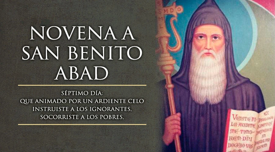 ¡Oh glorioso San Benito, que animado por un ardiente celo para asistir al prójimo en sus necesidades, instruiste a los ignorantes, socorriste a los pobres, curaste a los enfermos, resucitaste a los muertos, libraste a los cautivos del demonio y de sus pasiones, consolaste a los afligidos y convertiste a los pecadores! Consíguenos la gracia de amar al prójimo y de hacer con él las obras de misericordia. San Benito, ruega por nosotros. Tres Avemarías. Concluir con la oración final.