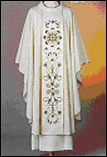 Es la vestidura que se pone el obispo sobre las demás prendas. Consiste en una pieza alargada con una abertura en el centro para pasar la cabeza. Es el símbolo de caridad, que hace dulce y suave el yugo de Jesucristo. Vestidura Sagrada que se pone el alba y que sirve para celebrar la Misa. Está abierta por lo alto, para que entre la cabeza, y por los lados; cae por delante y por detrás desde los hombros hasta media pierna.