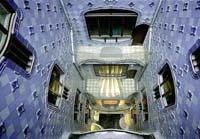 Ampliación y reforma de un edificio preexistente con objeto de convertirlo en inmueble comercial y de viviendas, propiedad del industrial Josep Batlló i Casanovas. Situada en el céntrico paseo de Gràcia de Barcelona la Casa Batlló, juntamente con la Casa Amatller (Josep Puig i Cadafalch, 1900) y la Casa Lleó Morera (Lluís Domènech i Montaner, 1905), configura lo que se conoce como "la manzana de la discordia", designada así porque en la misma manzana de casas coexisten tres soluciones artísticas coetáneas de distinta resolución estética.Gaudí dirigió las obras de la Casa Batlló replanteando las fachadas y plantas del antiguo edificio. Destaca la ampliación de su patio interior, con el objetivo de facilitar el paso de la luz que se filtra por una gran claraboya central que ilumina el hueco de la escalera hasta la planta baja. Este patio de luces esta recubierto con azulejos azules, cuya tonalidad disminuye gradualmente de arriba hacia abajo, más oscuras en su parte superior y más claras en la inferior, de tal modo que la luz fluye hasta la parte más baja y menos iluminada de la casa, dando como