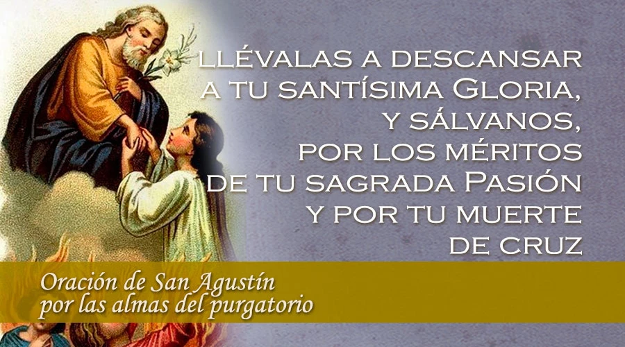 Dulcísimo Jesús mío, que para redimir al mundo quisiste nacer, ser circuncidado, desechado de los judíos, entregado con el beso de Judas, atado con cordeles, llevado al suplicio, como inocente cordero; presentado ante Anás, Caifás, Pilato y Herodes; escupido y acusado con falsos testigos; abofeteado, cargado de oprobios, desgarrado con azotes, coronado de espinas, golpeado con la caña, cubierto el rostro con una púrpura por burla; desnudado afrentosamente, clavado en la cruz y levantado en ella, puesto entre ladrones, como uno de ellos, dándote a beber hiel y vinagres y herido el costado con la lanza. Libra, Señor, por tantos y tan acerbísimos dolores como has padecido por nosotros, a las almas del Purgatorio de las penas en que están; llévalas a descansar a tu santísima Gloria, y sálvanos, por los méritos de tu sagrada Pasión y por tu muerte de cruz, de las penas del infierno para que seamos dignos de entrar en la posesión de aquel Reino, adonde llevaste al buen ladrón, que fue crucificado contigo, que vives y reinas con el Padre y el Espíritu Santo por los siglos de los siglos.