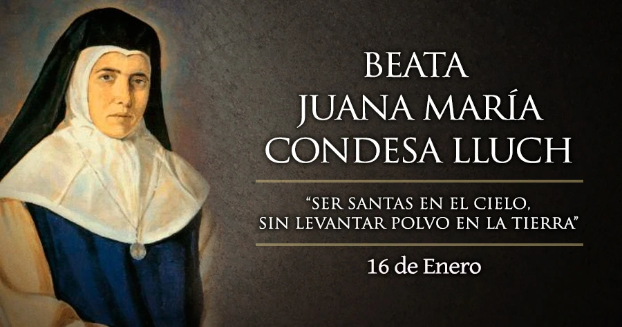 El 16 de enero de 1916, la Madre Juana María Condesa Lluch pasaba a contemplar el rostro de Dios por toda la eternidad, alcanzando su anhelo de santidad, manifestado tantas veces a las hermanas con estas palabras: «Ser santas en el cielo, sin levantar polvo en la tierra». Expresión que denota que su vida transcurrió según el Espíritu de Cristo Jesús, conjugando la más sublime de las experiencias, la intimidad con Dios, con el empeño de que la joven obrera alcanzara también la más sublime de las vocaciones, ser imagen y semejanza del Creador, y que pone de manifiesto su ser de «Mujer bíblica, llena de coraje en las elecciones y evangélica en las obras», tal como fue definida por uno de los Teólogos Consultores al estudiar sus virtudes.