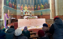 Una réplica de la Sábana Santa alienta a quienes sufren la guerra en Ucrania
