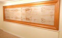 Una copia fotográfica del Santo Sudario, tal como se exhibe en su exposición permanente en la parroquia de Santo Tomás Apóstol en Ann Arbor, Michigan.