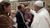 Papa Francisco bendice una familia en el Vaticano. Foto: Vatican Media