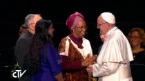 Ante la multitud congregada en el estadio de Malmö, Suecia, para asistir a la Misa con motivo de la Fiesta... Leer más