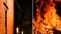 Imagen referencial crucifijo y fuego. Cru00e9dito: Pixabay