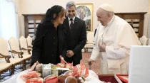 El Papa Francisco bendice al Presidente de Paraguay, Santiago Peña