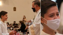 Durante la ceremonia de Primera Comunión, Caio Henrique Nagel Vieira se conmovió y lloró luego de recibir a Jesús Eucarístico... Leer más