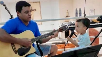 El pequeño Abraham Guerra cantó una sencilla y bella canción al Papa Francisco quien visitó la Casa Hogar El Buen... Leer más