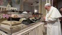 Durante unos emocionantes minutos, el Papa Francisco veneró el cuerpo parcialmente incorrupto del P. Pío de Pietrelcina en el Santuario... Leer más