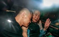 Kenji Fujimori y su padre, el expresidente Alberto Fujimori, en un auto saliendo de la cárcel.